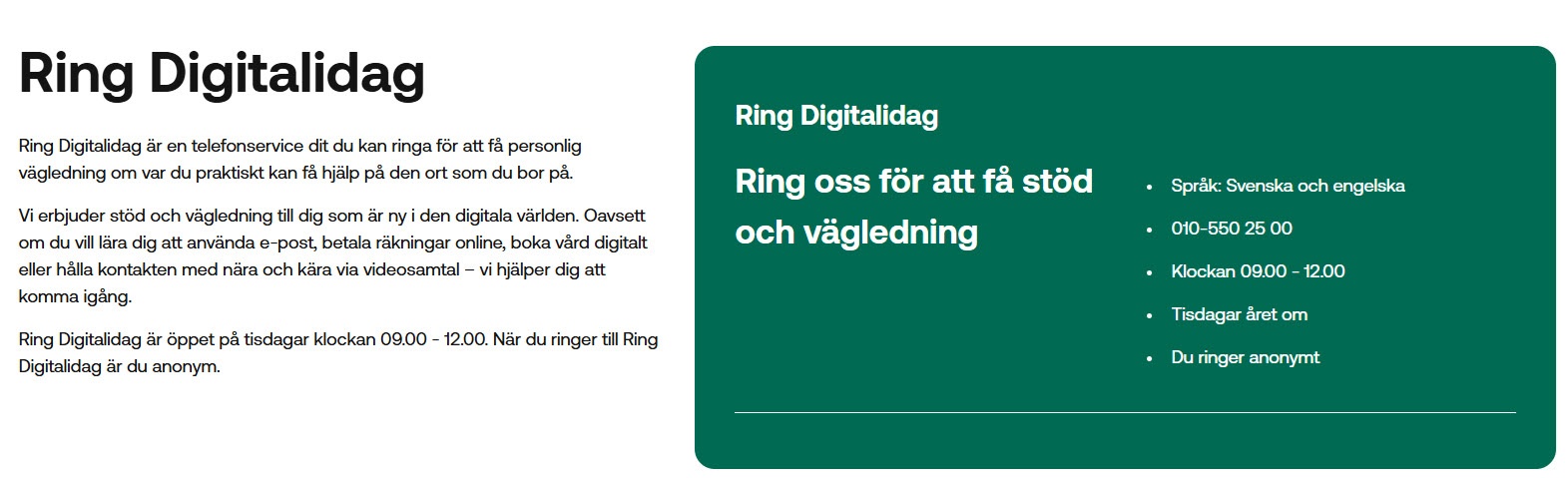 En möjlighet att få personlig vägledning är också via ”Ring Digitalidag”