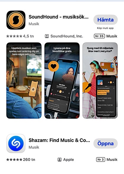 2026-02-26 ¦ Musik-app Shazam, Skärmklippverktyget, Döstäda föreläsning igår, Ny föreläsning Musik, Ny cirkel Internet o webbläsare.