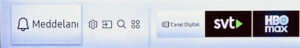 Sedan har jag hämtat apparna jag behöver i TV’n och installerat dem. SVT play finns säkert på plats redan, den är ju gratis. När jag trycker på Home-tangenten på min fjärrkontroll till TV’n då kommer en meny upp längst ned i TV-rutan. Här hittar jag en app som heter APPS så jag trycker på den och hittar bl a de apparna jag behöver. För mig är det TV4 play+, Discovery+, Allente och Pluto TV. När jag installerar de appar som jag måste betala för då får jag legitimera mig så leverantören vet att jag betalar.